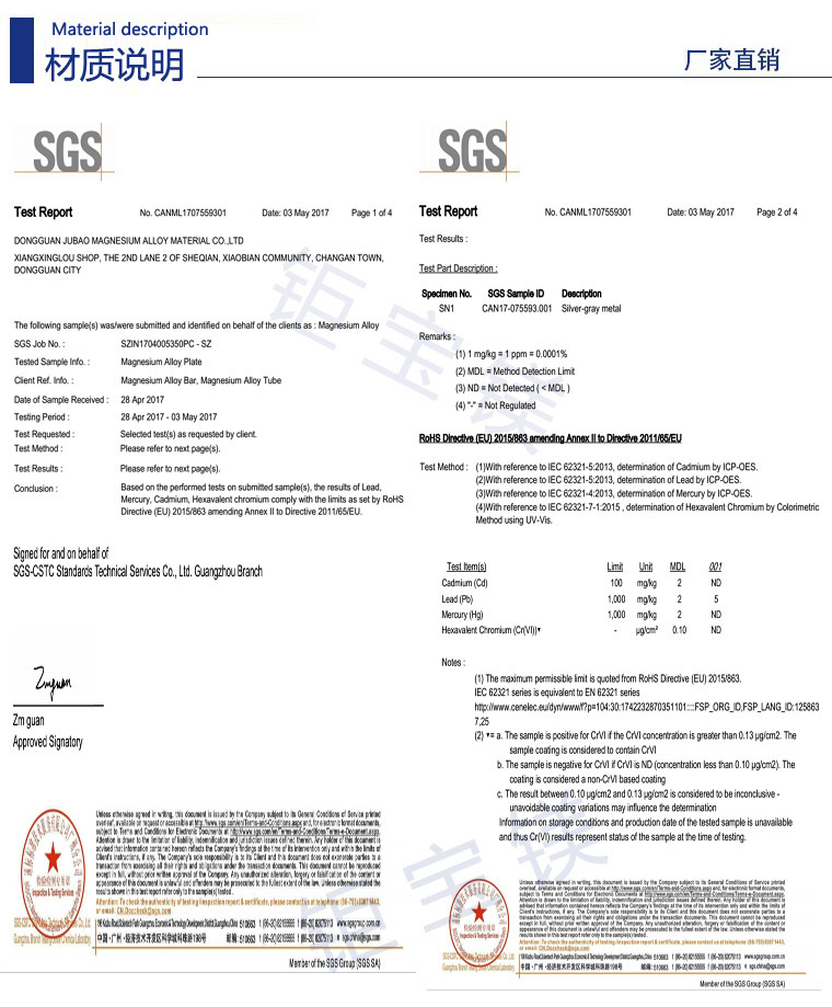 東莞市鉅寶鎂合金材料有限公司是一家專業(yè)從事鎂合金系列產(chǎn)品的研發(fā)、生產(chǎn)、銷售為一體的企業(yè),多年來,在同行業(yè)和消費(fèi)者的心中了贏得非常值得信賴的口碑,本司主要產(chǎn)品有:鎂合金板、鎂合金管、鎂合金棒、鎂合金型材、鎂豆、鎂絲、蝕刻板、雕刻板、及鎂合金機(jī)加工產(chǎn)品,主要應(yīng)用于:航天、軍工、軌道、交通、新能源汽車、智能制造、3C等各種領(lǐng)域,我司的產(chǎn)品暢銷美、歐、日、韓等各國,另外我司還通過了ISO9001:2015國際質(zhì)量管理體系認(rèn)證,擁有規(guī)范和完善的質(zhì)量體系,公司秉承“誠信、專業(yè)、共贏”的經(jīng)營理念,堅(jiān)持用戶至上,以優(yōu)質(zhì)的服務(wù)來服務(wù)好每一位客戶,堅(jiān)持技術(shù)上不斷創(chuàng)新、不斷超越,用我們的優(yōu)質(zhì)服務(wù)以及專業(yè)技術(shù)為客戶提供產(chǎn)品的后續(xù)表面處理及售后服務(wù)。
